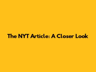 The NYT Article: A Closer Look