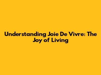 Understanding Joie De Vivre: The Joy of Living